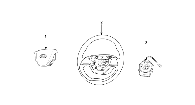 1. Airbag du conducteur (DAB) 2. Volant de direction 3. Ressort spiral |