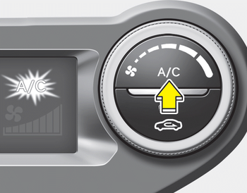 Appuyez sur le bouton A/C pour activer le système de climatisation (le voyant de l'écran s'allume).