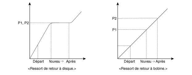 Le ressort de retour à disque est appliqué au frein de marche lente et de