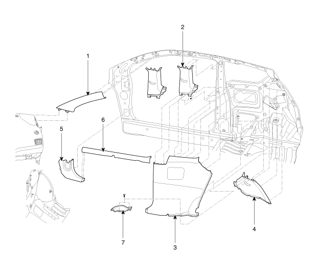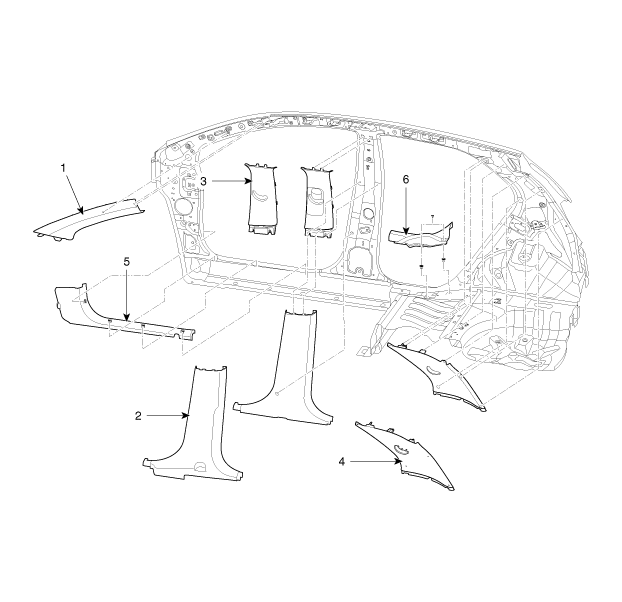 4. Ornementation du montant arrière 5. Ornementation de protection de la porte avant 6. Ornementation de protection de la porte arrière |