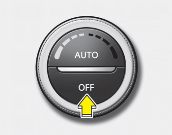Appuyez sur le bouton OFF pour couper la climatisation. Vous pouvez toutefois activer le système et les boutons d'admission d'air tant que le contacteur d'allumage est positionné sur ON.