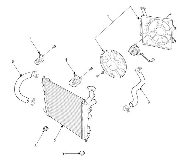 1. Ensemble du ventilateur de refroidissement 2. Ensemble du radiateur 3. Isolant de fixation |