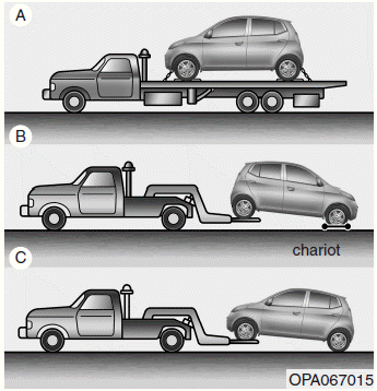 Si un remorquage d’urgence s’avère nécessaire, nous vous recommandons de faire appel à un concessionnaire Kia agréé ou à un service de dépannage commercial. Des procédures de levage et de remorquage adaptées sont nécessaires pour éviter d ”endommager le véhicule. L’utilisation de chariots porteroues ou d’un plateau est recommandée.