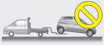 Lors du remorquage par une dépanneuse commerciale sans chariots porte-roues, c’est toujours l’avant du véhicule qui doit être levé, et non l’arrière.
