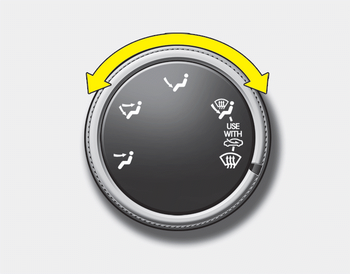 L’air peut être dirigé vers le plancher, vers les sorties voisines du tableau de bord ou vers le pare-brise. 5 symboles sont utilisés pour représenter les positions, visage, sortie double, plancher, plancher-dégivrage et dégivrage.